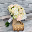 Белый букет пионовидных роз с гортензией 4625 ₽