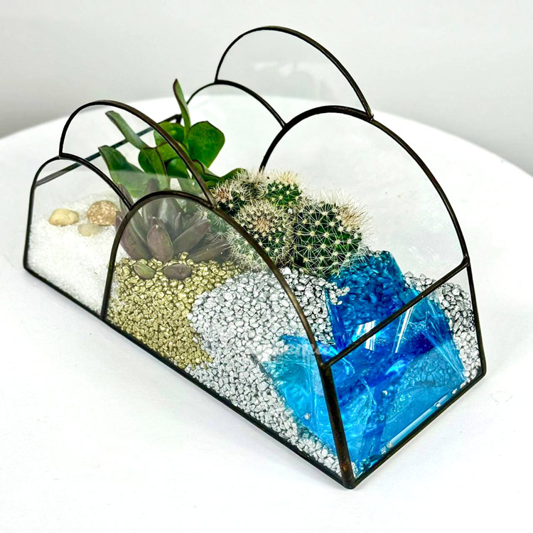 Флорариум с кактусом, суккулентами и водоемом