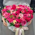 Коробка розовых гвоздик, роз и гортензии